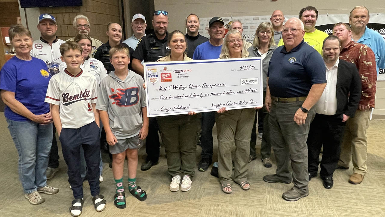 $126,000 in proceeds from the 2025 Knights of Columbus Walleye Classic were distributed to 12 different charitable organizations in the Bemidji area on Thursday. (Credit: Knights of Columbus Walleye Classic)